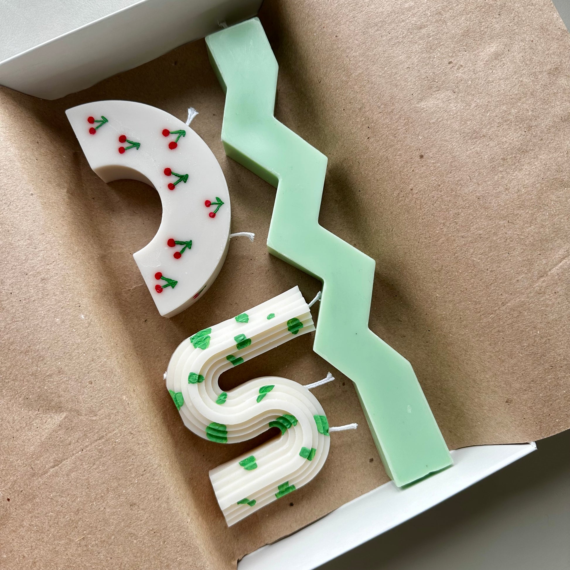 Kolmest käsitsi valatud ja maalitud küünlast koosnev ainulaadne komplekt. Iga küünal on väike kunstiteos, mis lisab ruumile soojust ja värvi. Lõhnatud, sobivad nii kodu kaunistuseks kui kingituseks. Vegan sojavaha ja hoolikalt valitud materjalid tagavad kvaliteedi ja erilisuse.